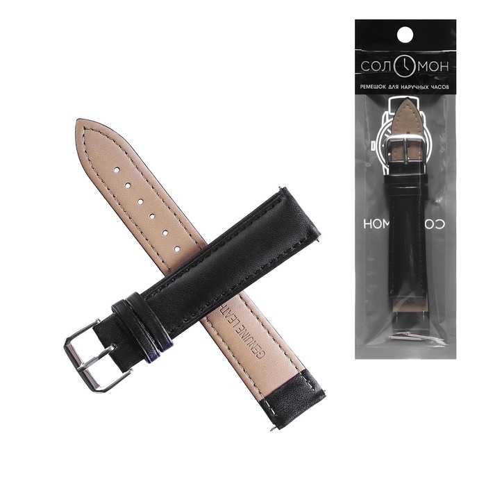 Ремешок для часов "Соломон", 20 мм, натуральная кожа, l-20 см, черный