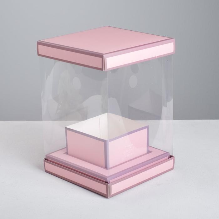 Коробка подарочная для цветов с вазой и PVC окнами складная, упаковка, «Лаванда», 23 х 30 х 23 см