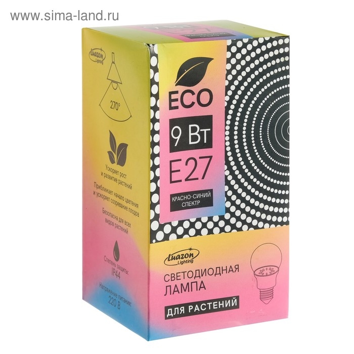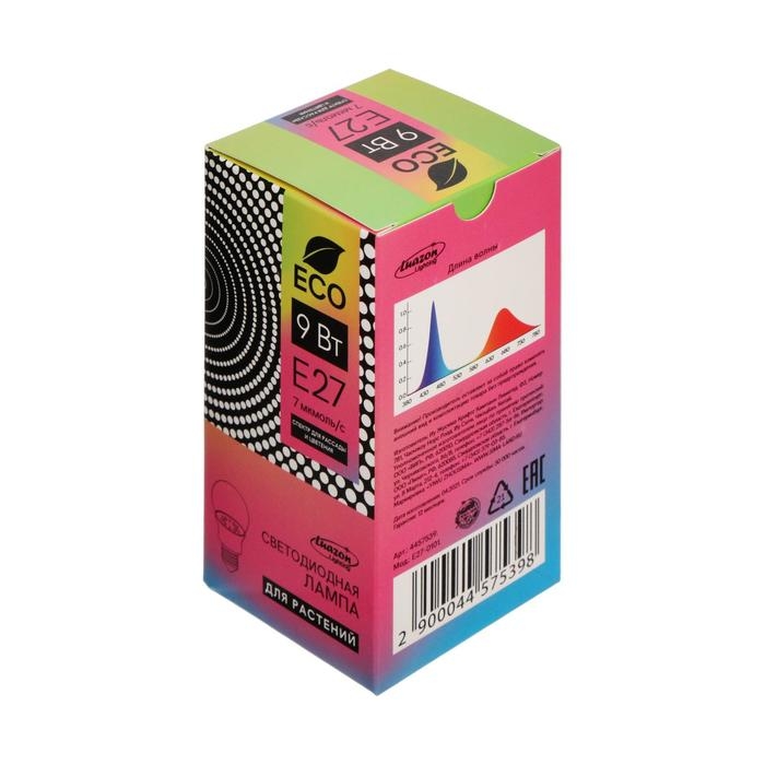 Фитолампа светодиодная Luazon Lighting, А60, E27, 9Вт, IP44, 220В, 270°, мультиспектральная