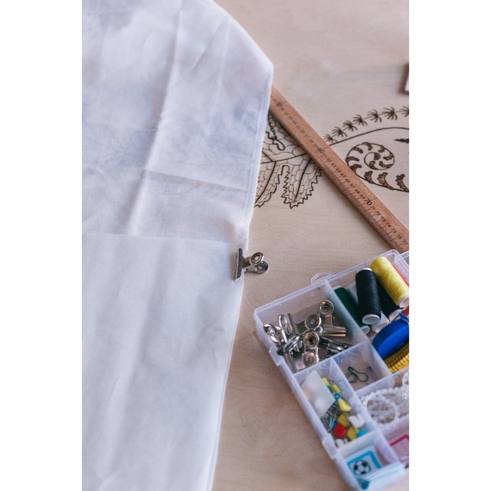 Чтобы ткань не мялась и не собиралась при крое, используйте специальные зажимы. Они надёжно зафиксируют материал, не повреждая его, и существенно облегчат работу.