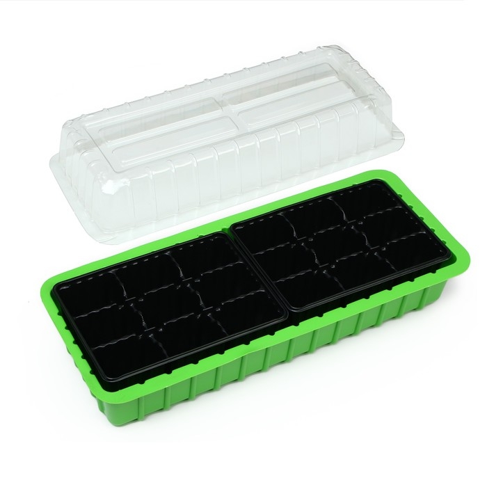 Мини-парник для рассады, 40 × 16 × 13 см, 2 вставки, 18 ячеек, Greengo
