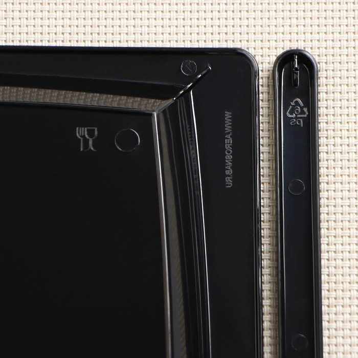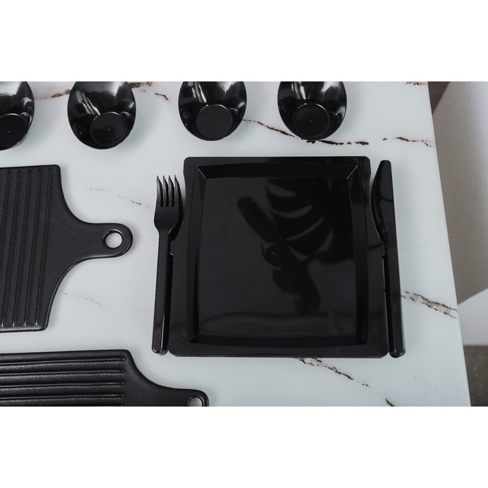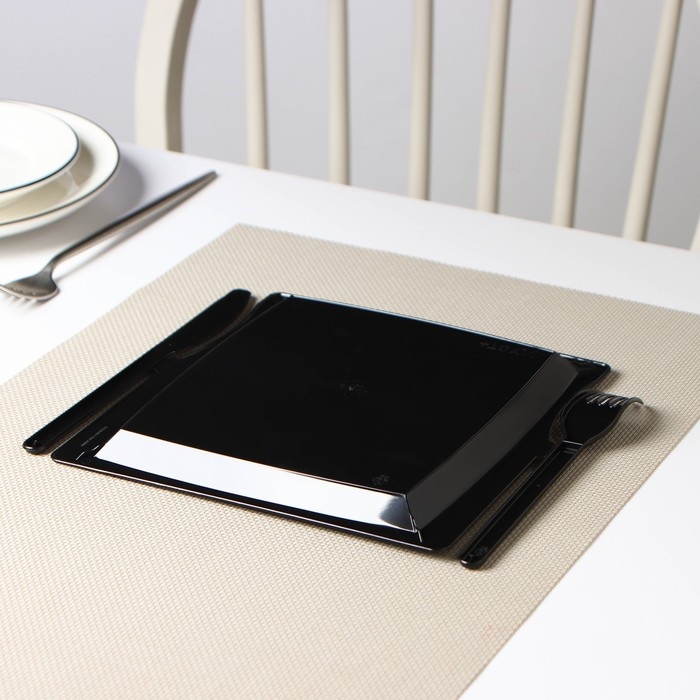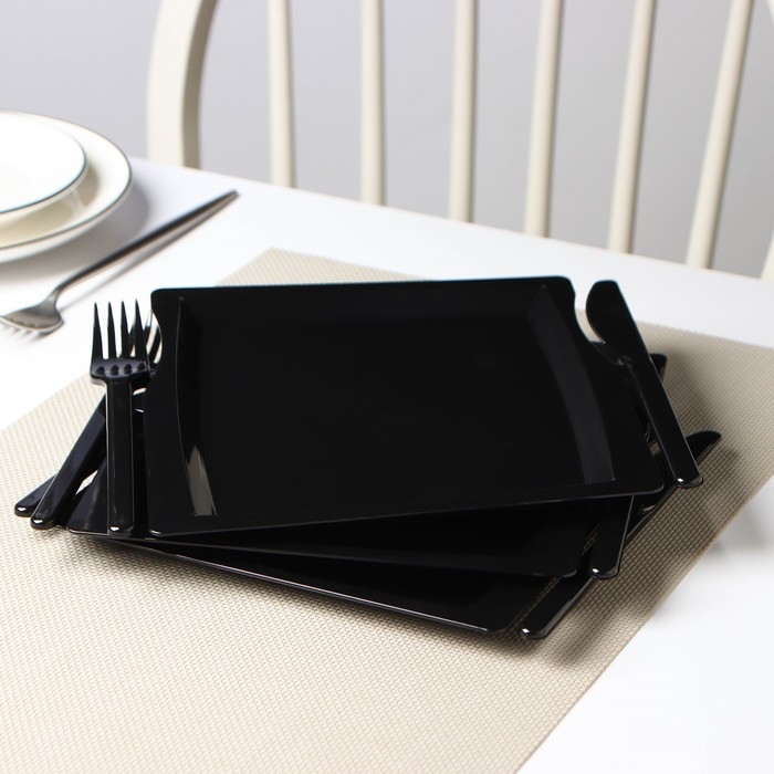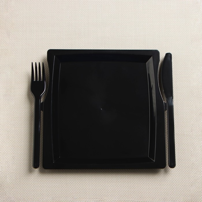 Тарелка пластиковая одноразовая 3 в 1: тарелка, вилка, нож, квадратная, черная
