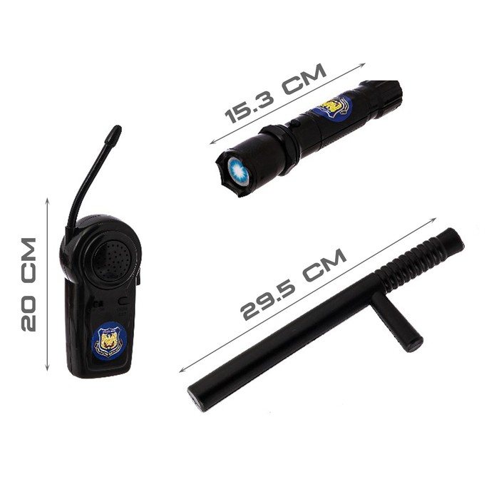Этот набор поможет малышу почувствовать себя настоящим полицейским! Для этого в наборе есть все необходимые атрибуты: шлем, жилет, рация и многое другое.