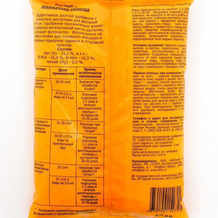 Удобрение минеральное "Буйские удобрения", магний-аммиачная селитра, 0,9 кг