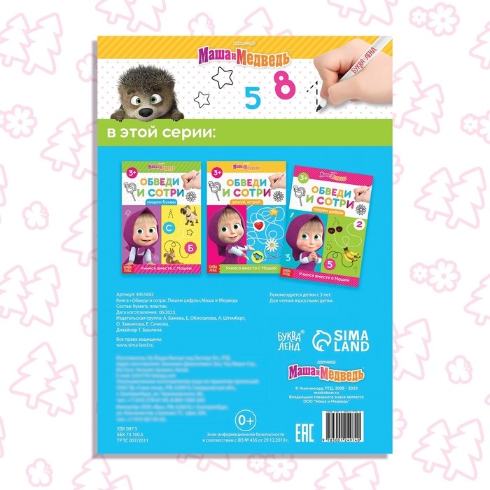 Книга «Обведи и сотри. Пишем цифры», 12 стр., А5, + маркер, Маша и Медведь