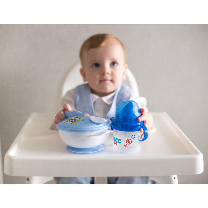 Набор детской посуды «Сладкий малыш», 3 предмета: тарелка на присоске, крышка, ложка, цвет голубой