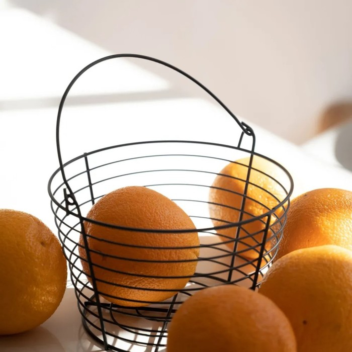 Стильная ваза для фруктов станет идеальным дополнением любого интерьера. Корзинка выполнена из окрашенного металла, что защищает её от коррозии. Благодаря оригинальному дизайну, фруктовница станет украшением вашей кухни или праздничного стола. Удобная конструкция позволит дольше сохранить фрукты свежими.