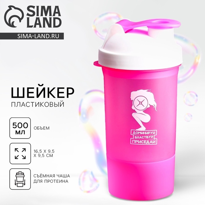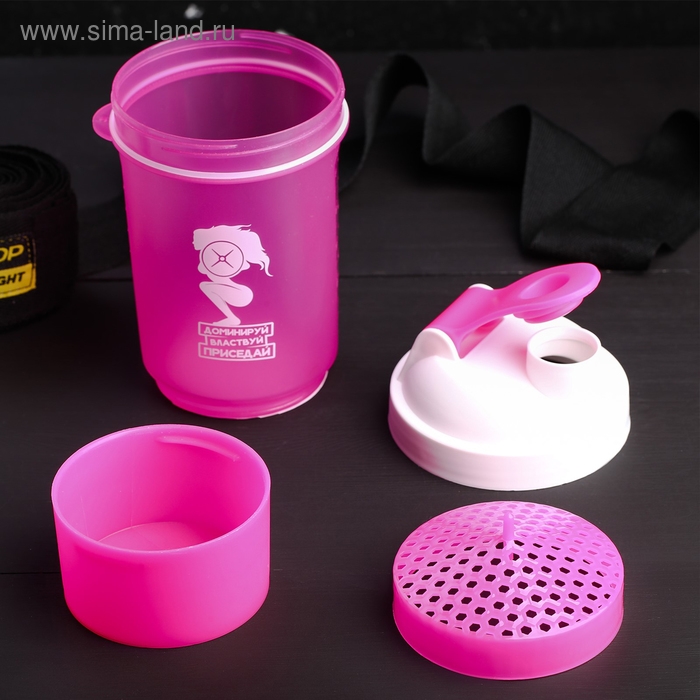 Шейкер спортивный «Доминируй, властвуй, приседай», розовый, с чашей под протеин, 500 мл