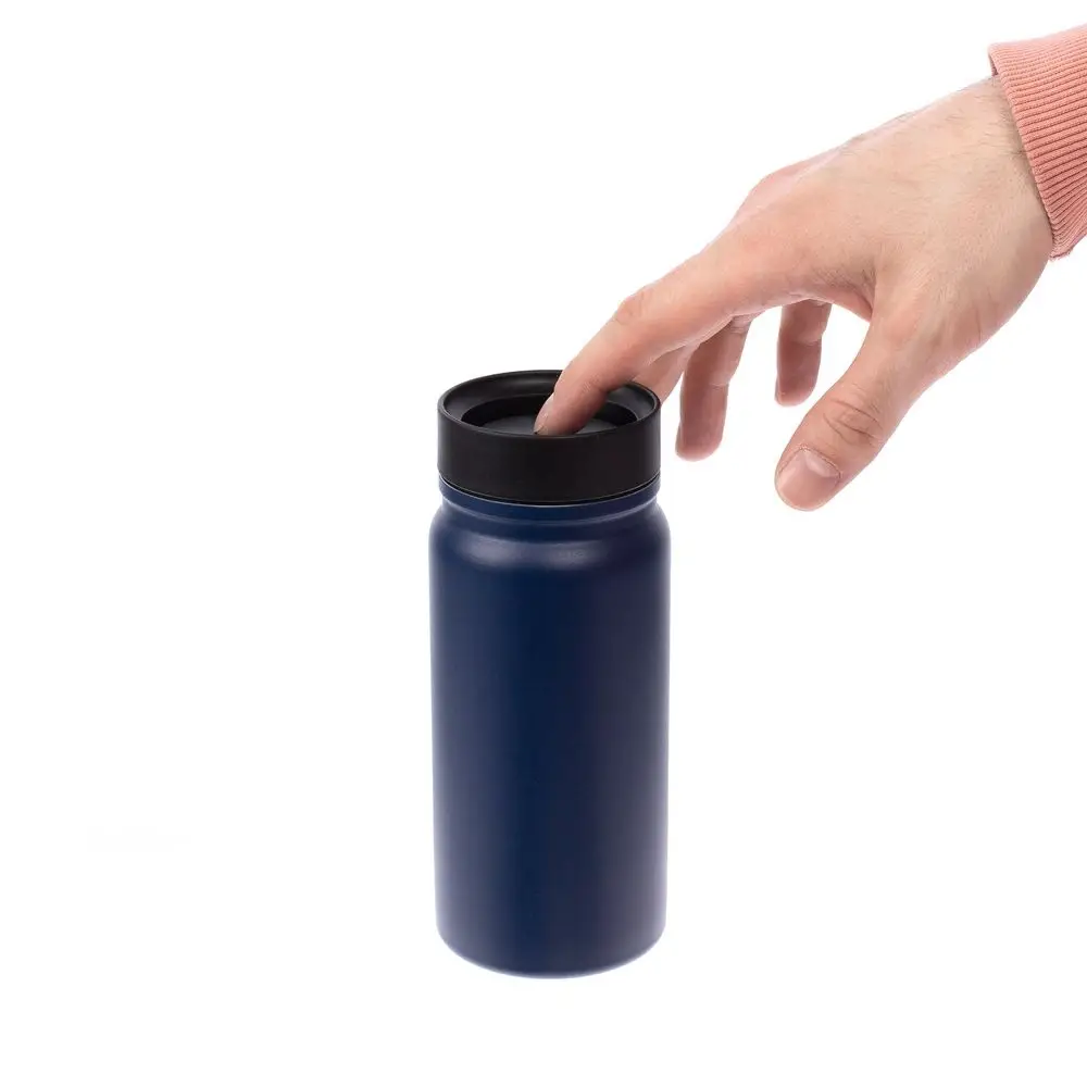 - Герметичная завинчивающаяся крышка с силиконовым уплотнителем и питьевой системой с клапаном — технология 360° позволяет одним нажатием открывать кружку и пить с любой стороны