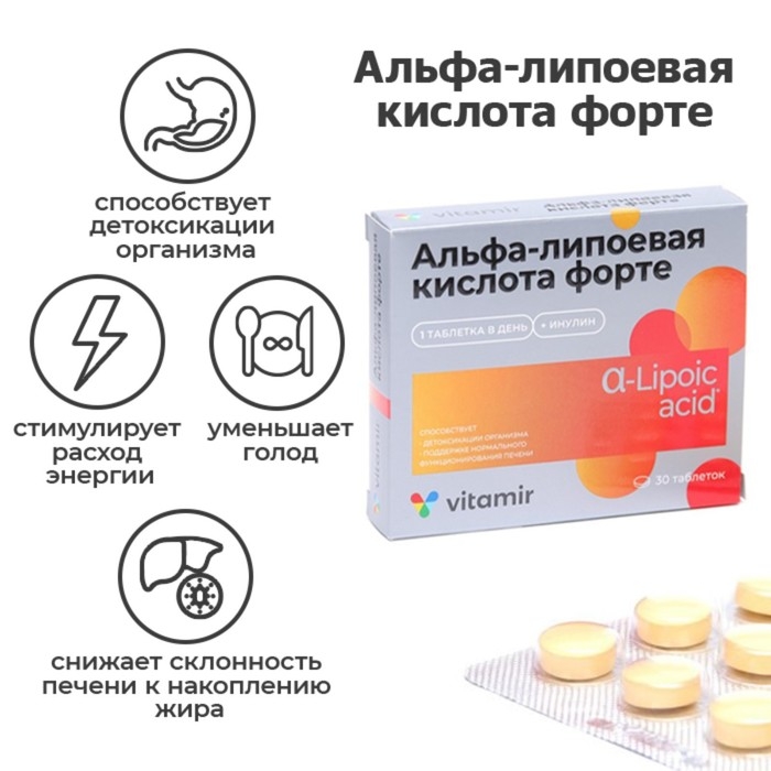 Альфа-липоевая кислота, при похудении, 100 мг, 30 таблеток