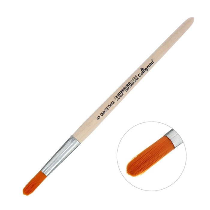 Кисть для рисования, Синтетика Круглая № 8 (диаметр обоймы 8 мм; длина волоса 26 мм), деревянная ручка, Calligrata