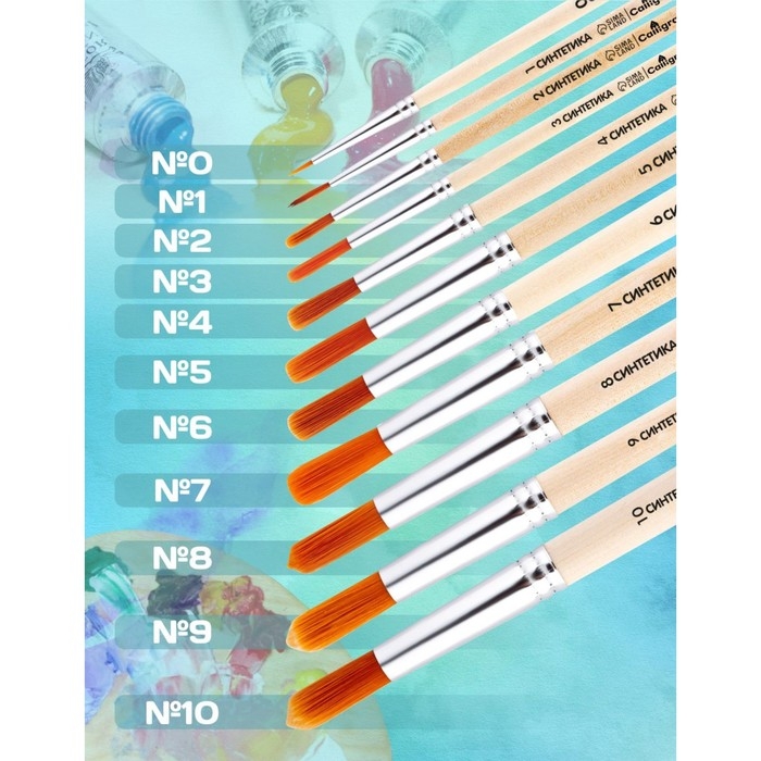 Синтетический волос имеет гладкую структуру и обладает капиллярным эффектом, что позволяет использовать такие кисти при работе с акварелью, гуашью, темперой, акрилом и маслом.