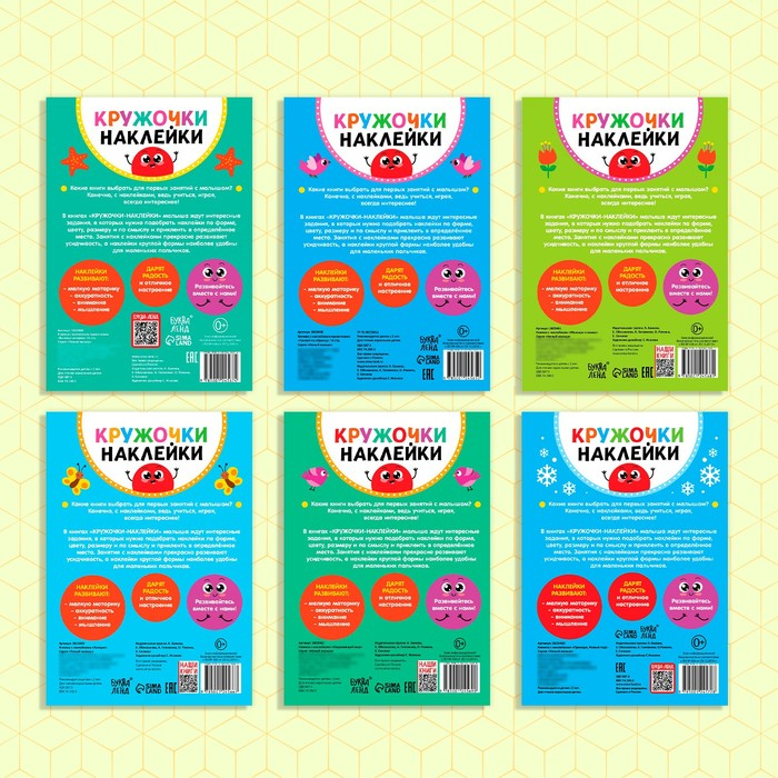 Наклейки обучающие набор «Весёлые кружочки», 4 шт. по 16 стр., формат А4