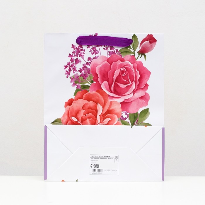 Пакет ламинированный "Красочные пионы" 26x32x12
