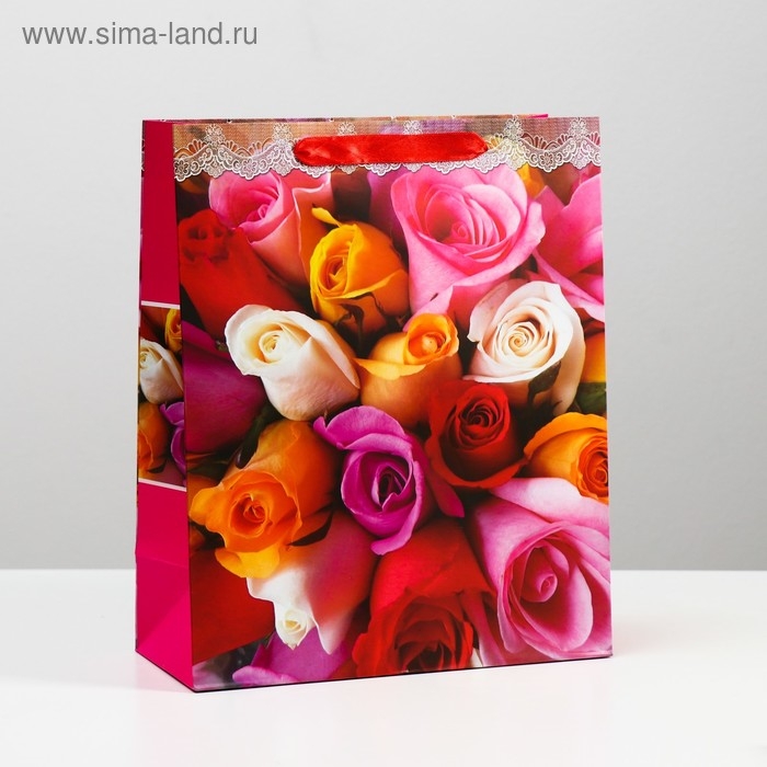 Пакет ламинированный "Яркая роза" 26x32x12