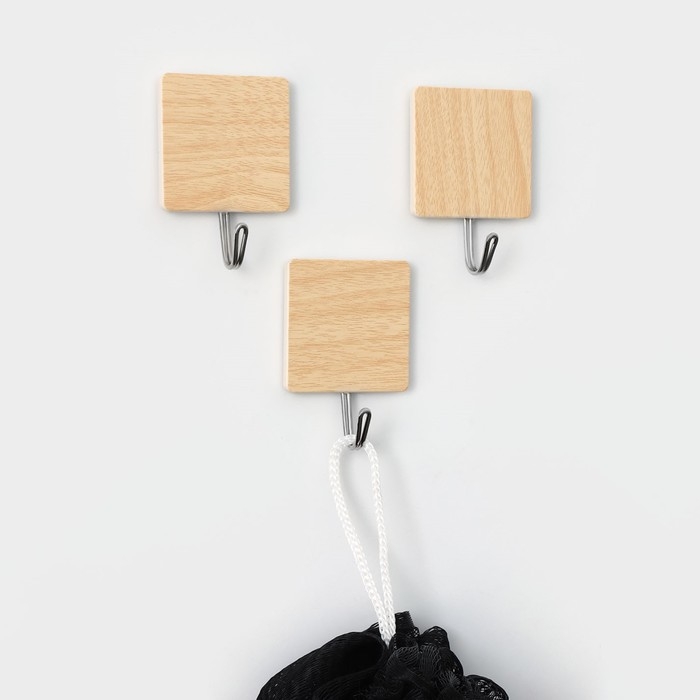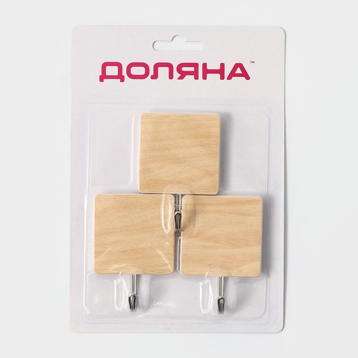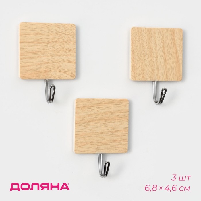 Крючки самоклеящиеся Доляна «Квадрат», 3 шт, цвет светлое дерево
