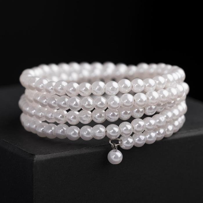 Браслет жемчуг «Невеста» бусины d=0,5, 4 ряда с пружинкой, цвет белый