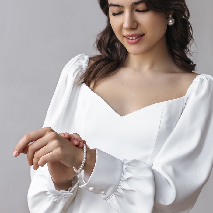 Браслет жемчуг «Невеста» шар №6, цвет молочный, d=5,5 см