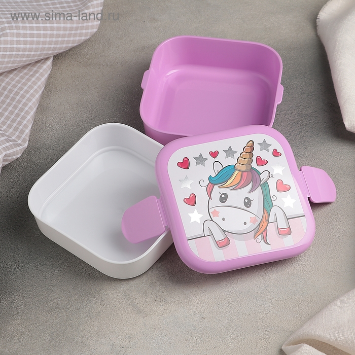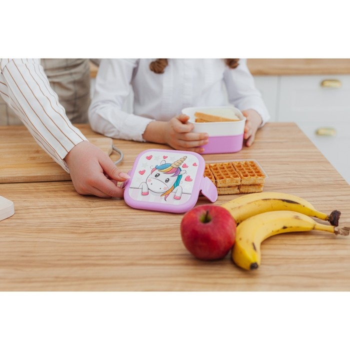 Контейнер для обеда «Единорог», 2 отделения, 400+400 мл, цвет розовый