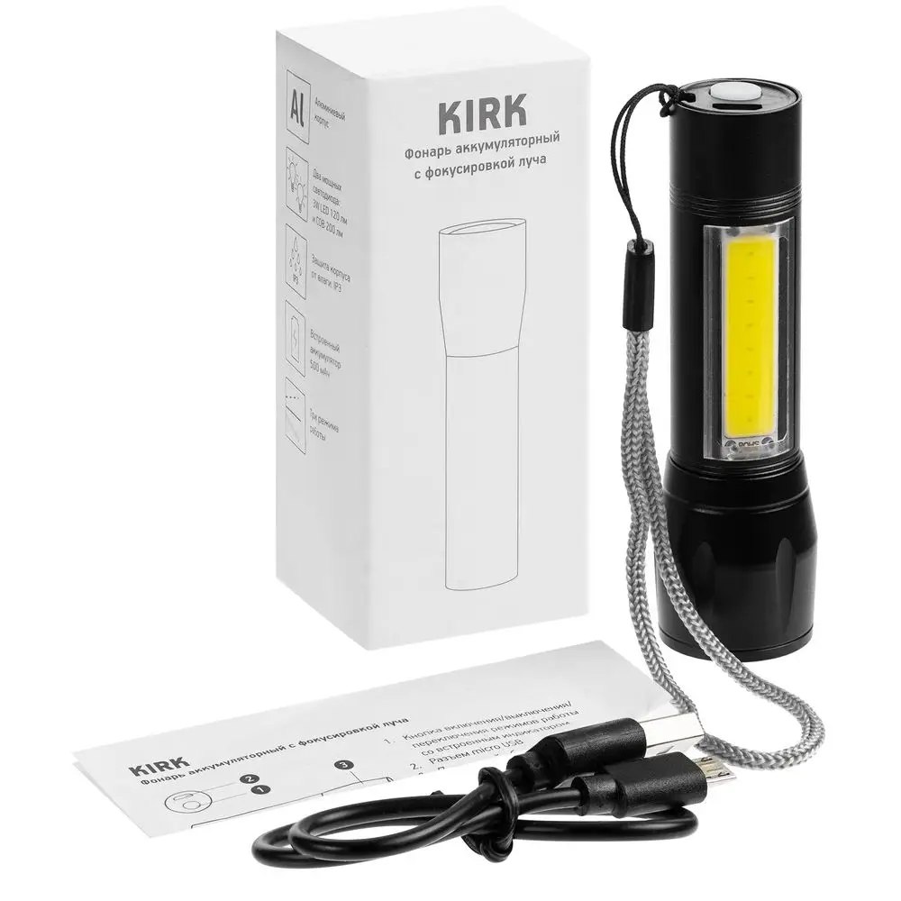 Фонарик аккумуляторный с фокусировкой луча Kirk, черный