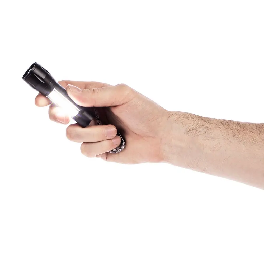 Фонарик Kirk позволяет удобно реализовывать два сценария использования — с привычной прямой подсветкой и фокусировкой луча и световой заливкой с помощью боковой панели-факела.