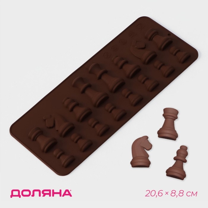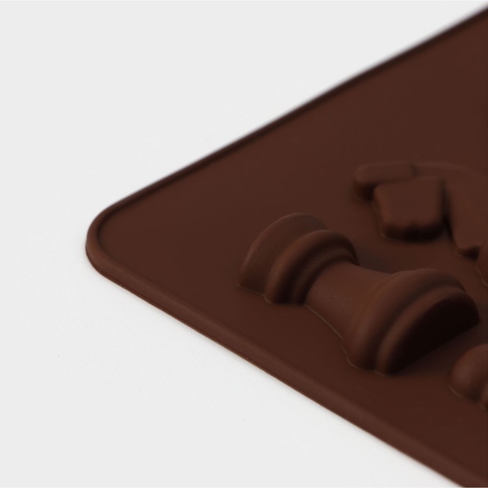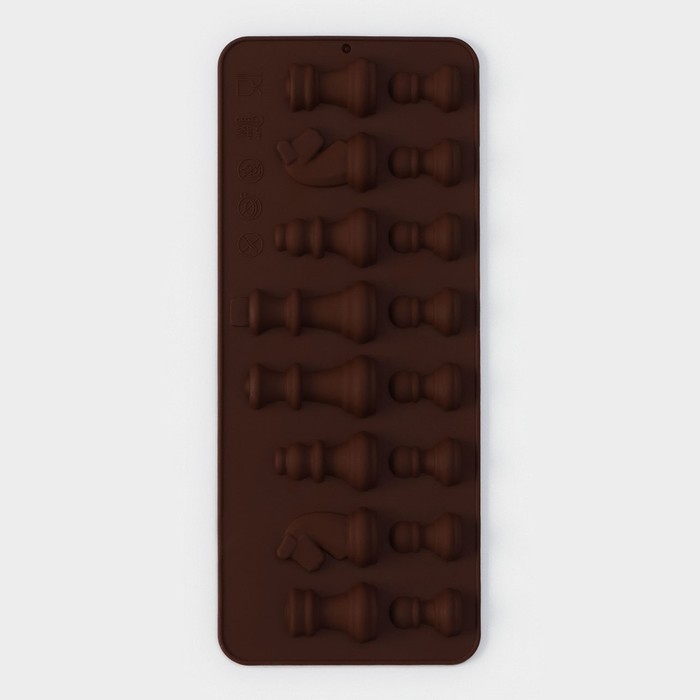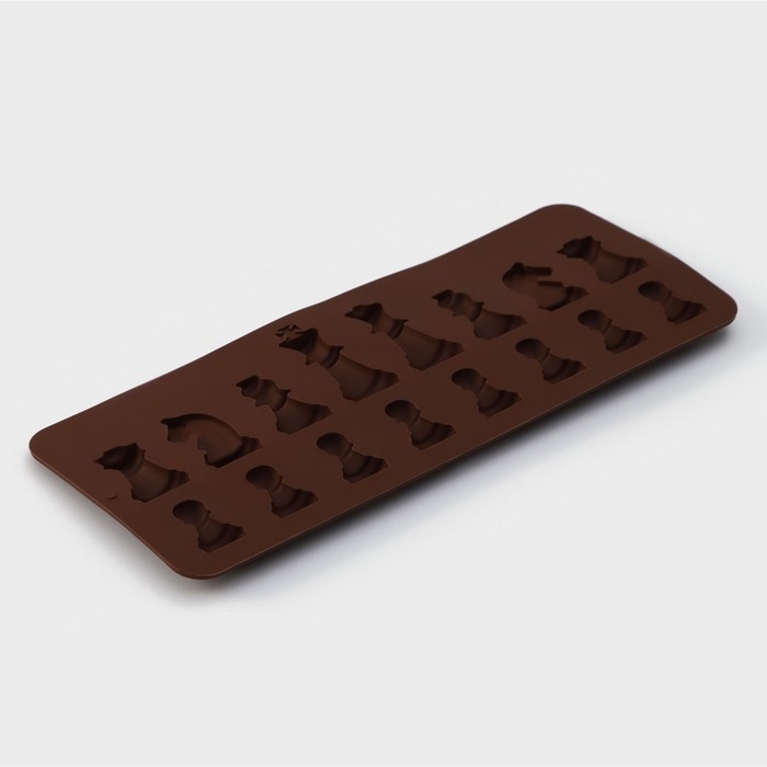 Форма для шоколада Доляна «Шахматы», силикон, 20,6×8,8 см, 16 ячеек, цвет коричневый