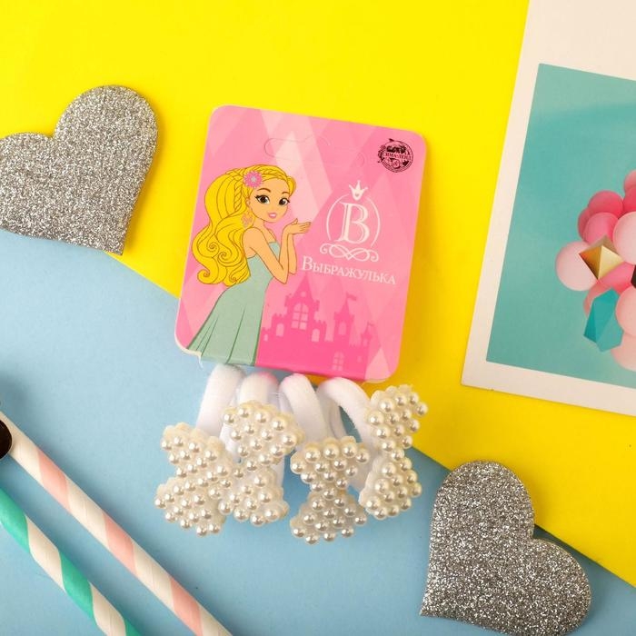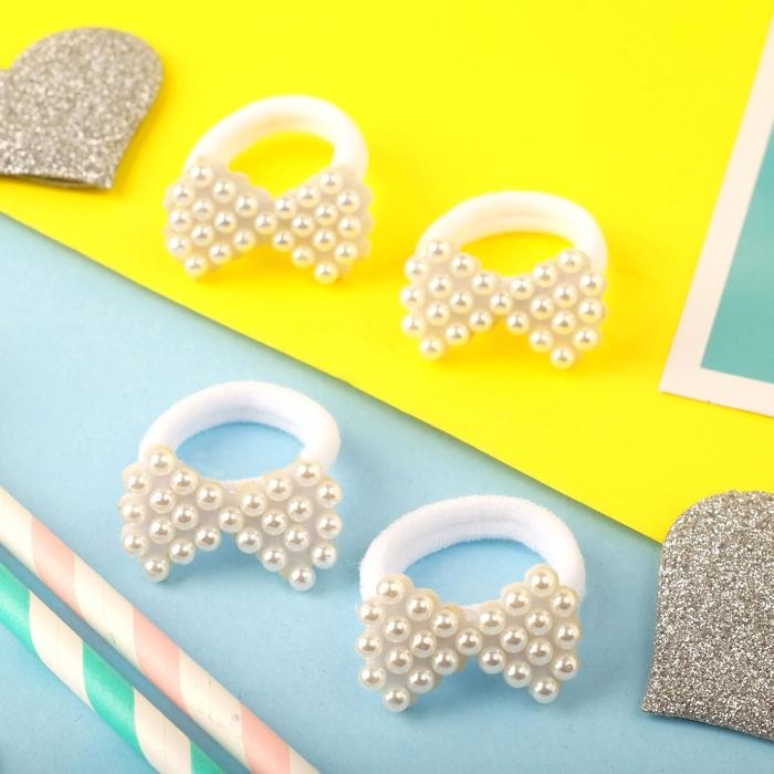 Резинка для волос "Жемчужная" (набор 4 шт) бантики, белый