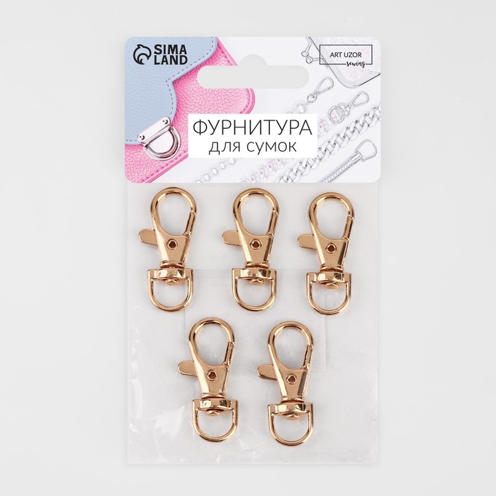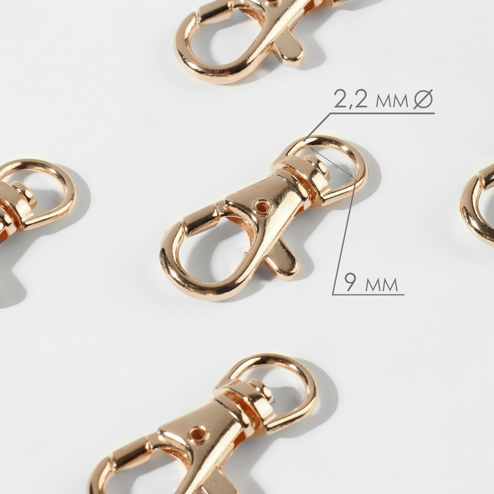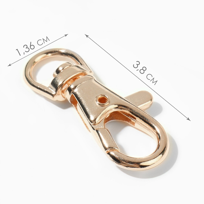 Карабин металлический, 38 × 13,6 мм / 9 × 2,2 мм, 5 шт, цвет золотой