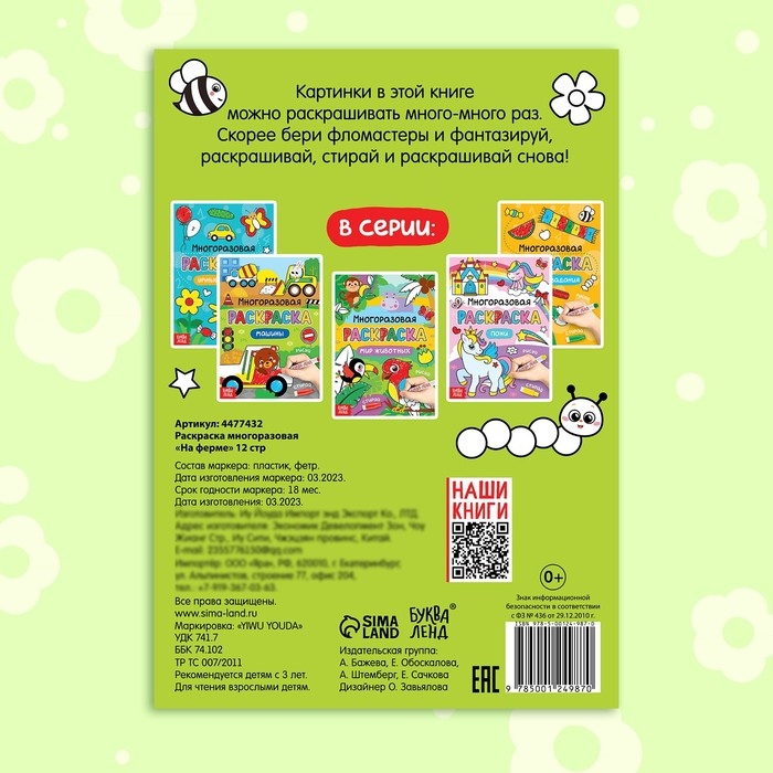 Раскраска многоразовая «Рисуй-стирай. На ферме» 12 стр.