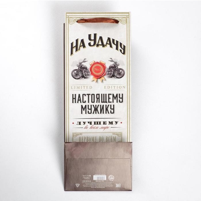 Пакет подарочный под бутылку, упаковка, «Настоящему мужику», 36 х 13 х 10 см
