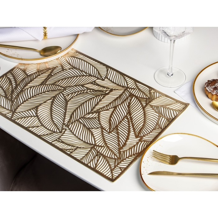 Салфетка сервировочная на стол Доляна «Листопад», 45×30 см, цвет золотой