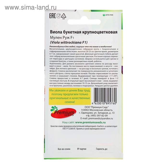 Семена цветов Виолла букетная крупноцветковая "Мулен Руж" F1