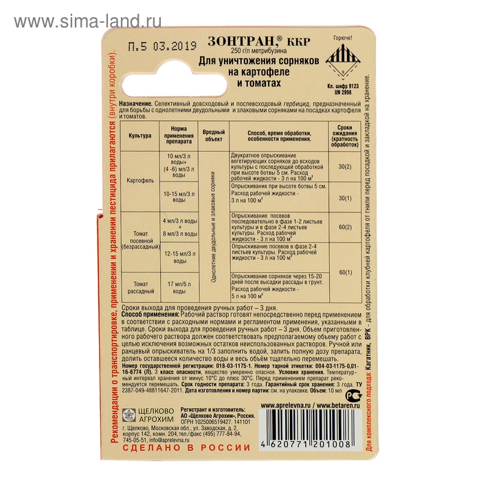Системный гербицид в инновационной формуляции для борьбы с широким спектром двудольных и злаковых сорняков на картофеле, томатах, пшеницы озимой, сои, нута.