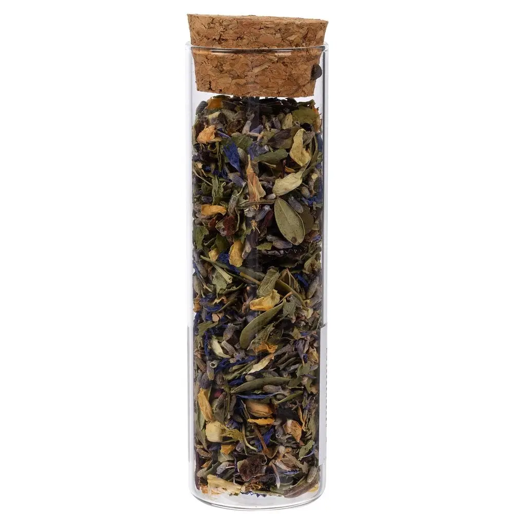 - чай травяной «Горная лаванда» (состав: цветы лаванды, цветы жасмина, шалфей, толокнянка, шиповник, ягоды шелковицы, лепестки василька, каркаде), вес 15 г;