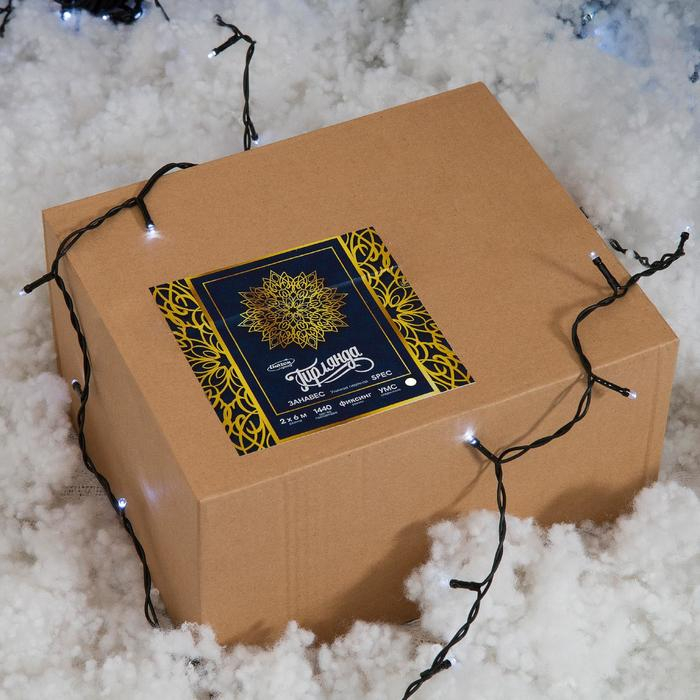 Гирлянда «Занавес» 2 × 6 м, IP44, УМС, тёмная нить, 1440 LED, свечение белое, мерцание, 220 В
