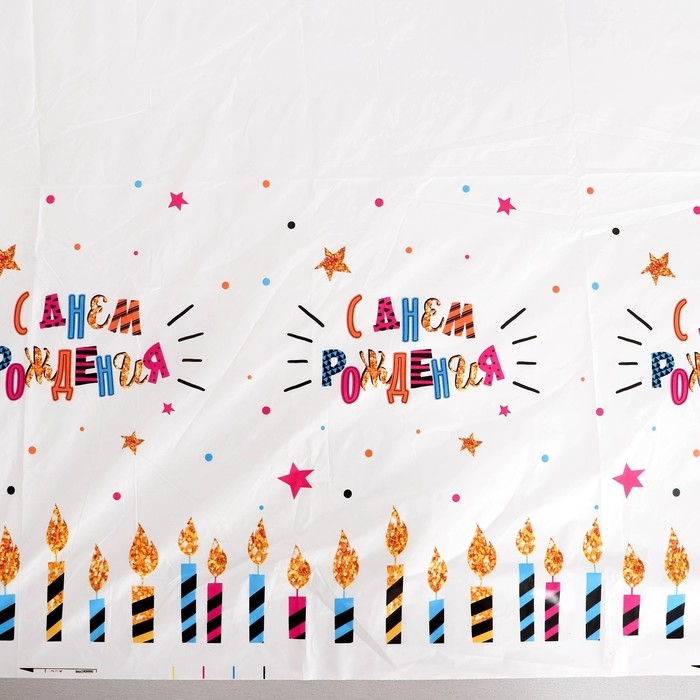 Скатерть одноразовая «С днём рождения», свечи, 180×137 см
