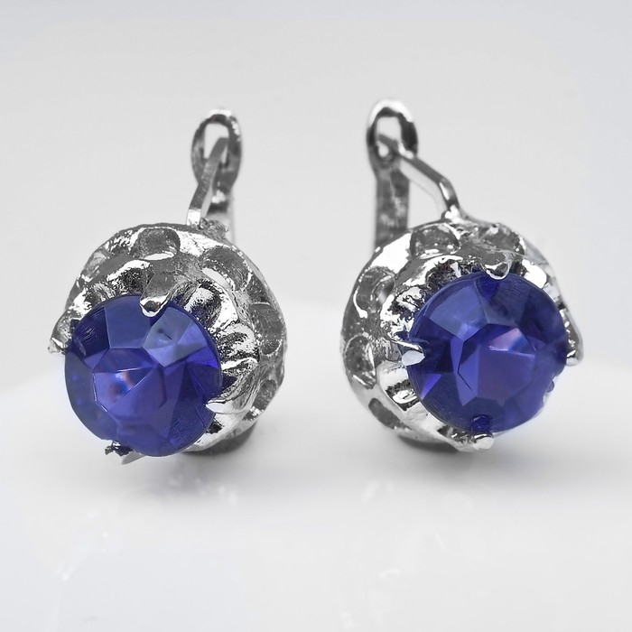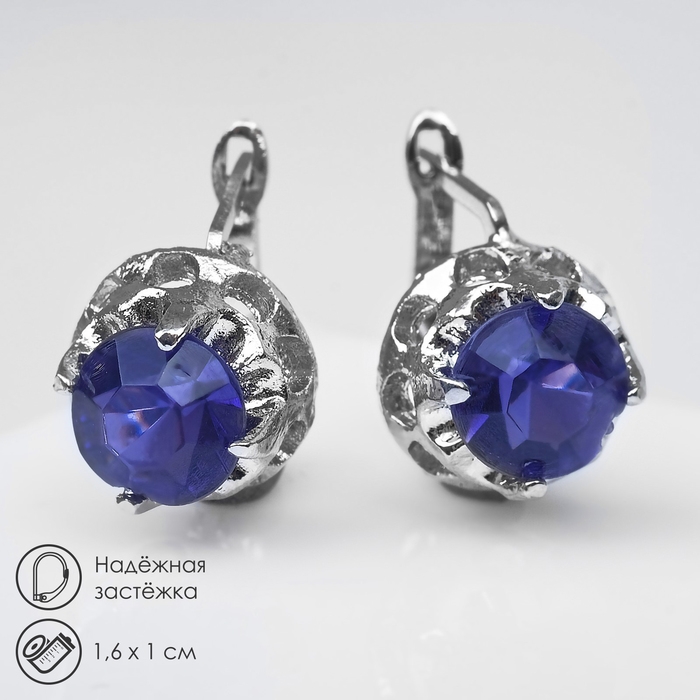 Серьги со стразами «Эдель» кружок, цвет сине-фиолетовый в серебре