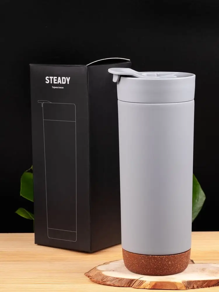 Контраст текстурной пробки на дне и матового покрытия делают термостакан Steady не только практичным, но и стильным подарком.