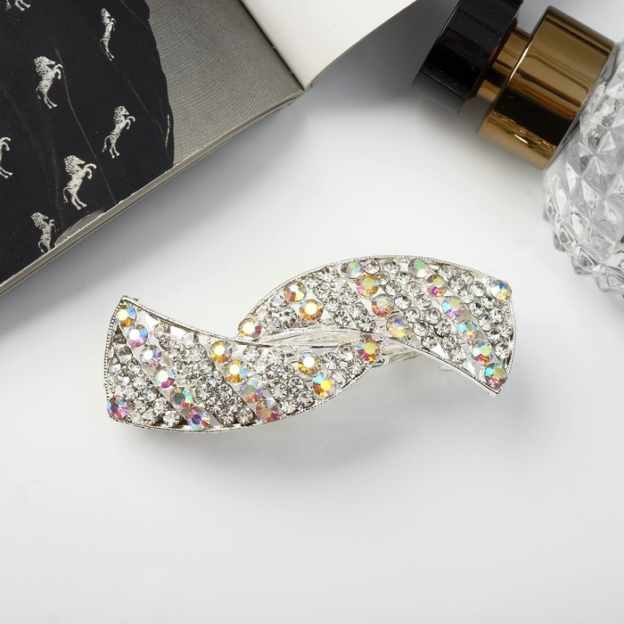 Заколка-автомат для волос "Линетта" волны, 8,5 см, серебро