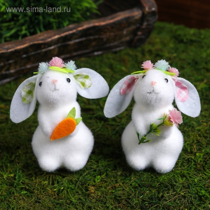 Сувенир "Кролики с морковкой и цветочком" набор 2 шт 8х4,5х4,5 см
