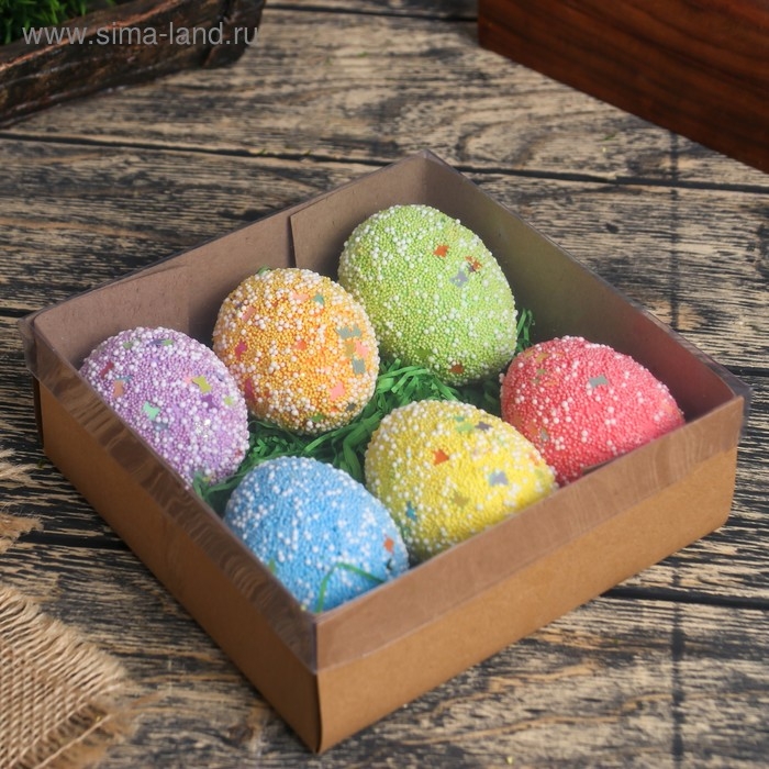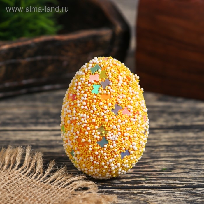 Декор пасхальный "Яйцо посыпка бабочки в травке" набор 6 шт яйцо 5х7 см
