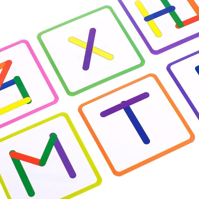 Вот так в процессе игры ребёнок познакомится с буквами, запомнит их произношение и правописание. Используйте разные варианты игры, сортируйте палочки по цвету или счёту, стройте геометрические фигурки. Складывайте из них картинки и развивайте память малыша.
