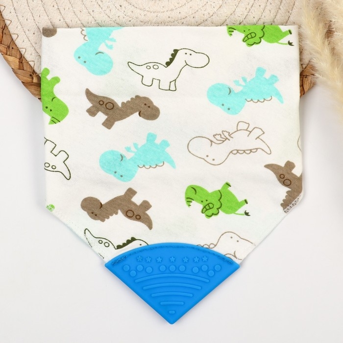 Нагрудник-бандана/слюнявчик для кормления непромокаемый с прорезывателем на кнопке, цвет голубой, МИКС