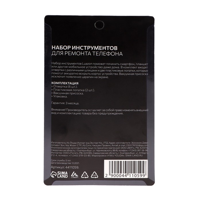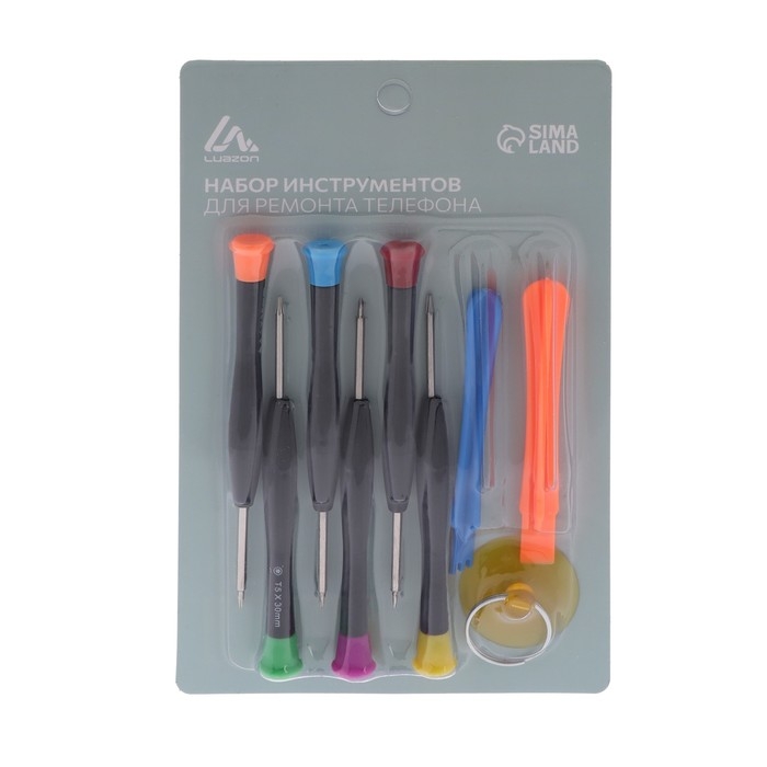 Набор инструментов LuazON станет незаменимым помощником для специалиста или домашнего мастера. Отремонтируйте смартфон, планшет или другое мобильное устройство. В комплекте есть всё, что нужно для быстрого ремонта: 6 х отвёртка, 2 х пластиковая лопатка, 1 х вакуумная присоска.