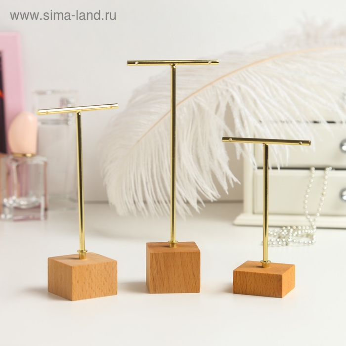 Подставка под серьги Т-образная, набор 3 шт., 16, 13,5, 11,5 см, цвет золото