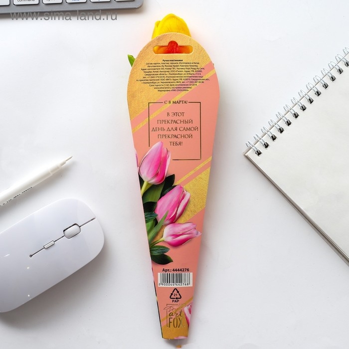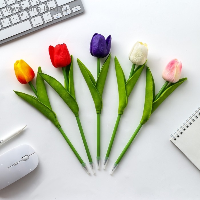 Ручка прикол шариковая синяя паста «Тюльпан» подарочная на 8 марта МИКС