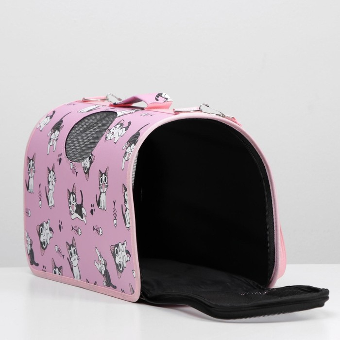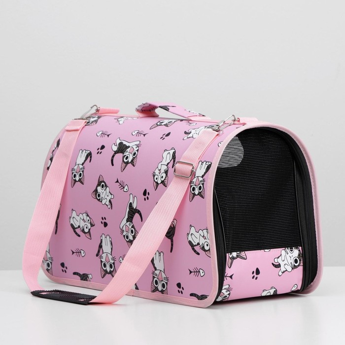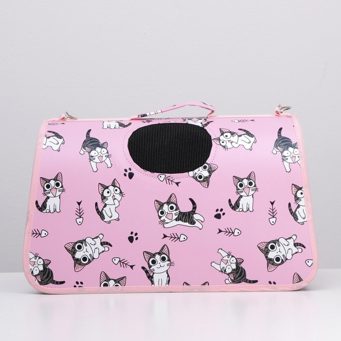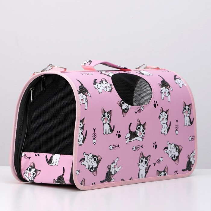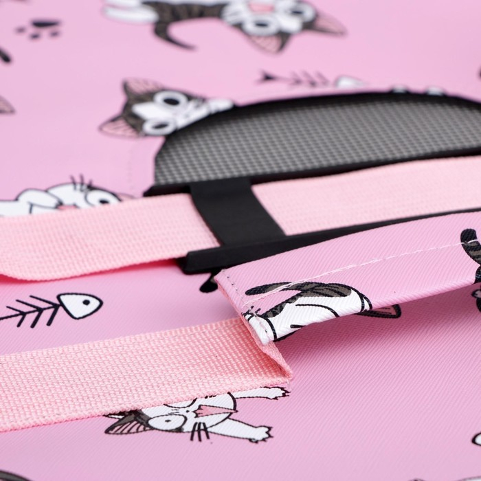 Сумка - переноска для животных "Играющие котики", розовая, размер М, 40 х 21 х 27 см