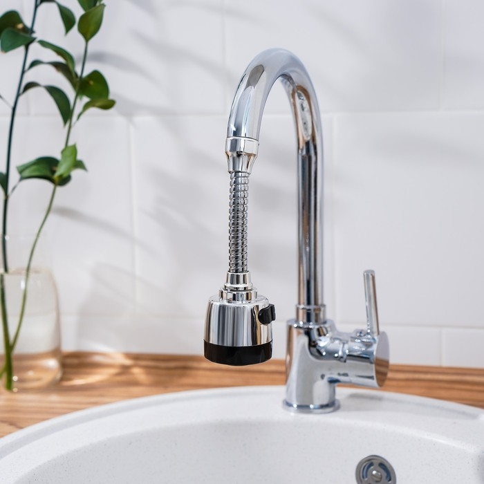 Насадка на кран для экономии воды с изменяемым напором и углом струи Доляна, 17 см