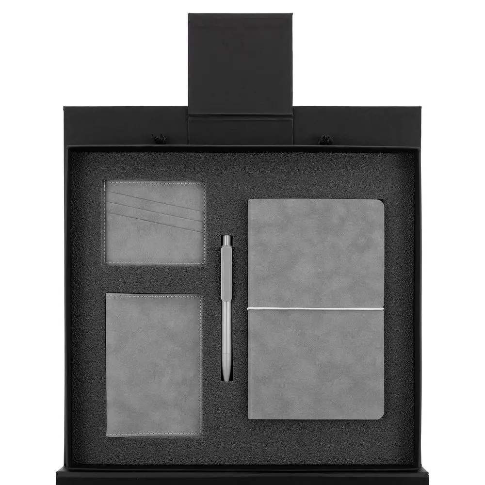 Набор с ежедневником и персональными аксессуарами из коллекции Nubuk в подарочной коробке с ручками одинаково хорошо исполнит роль как делового, так и личного подарка.