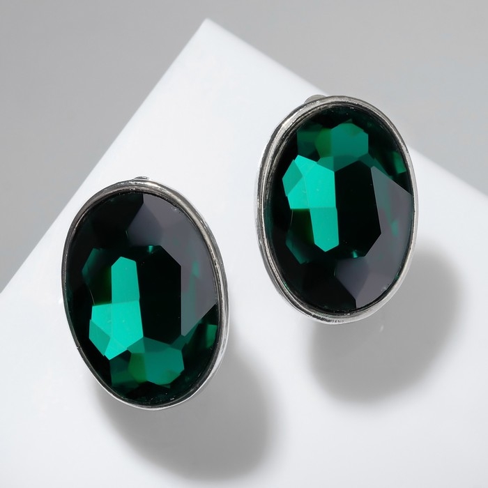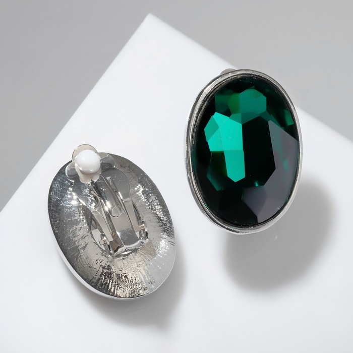 Клипсы «Вечеринка» овалы, цвет изумрудный в серебре
